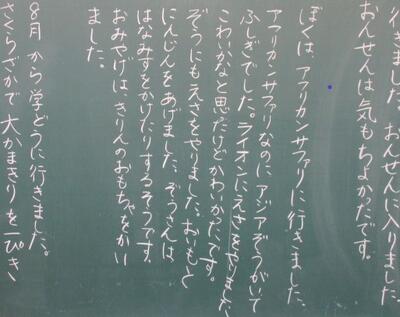 ある学級で、子どもの夏休みの思い出が板書されていました。