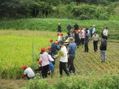 10月初旬に5年生が稲刈りを行いました。地域の吉永さんをはじめ、至心会の環境・農業委員さんのご協力のもと、貴重な体験をさせていただきました。5年生は、社会科でも農産物の学習を行います。教科書の中だけではなく、実際に田植えや稲刈りをできる環境にあることにありがたさを感じているところです。地域の皆様、保護者の皆様、ご協力ありがとうございました。
