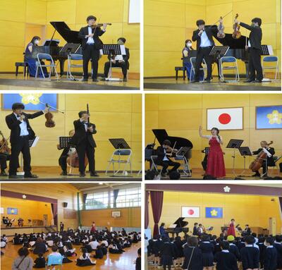 10月25日に「東京なないろアンサンブル」さんをお招きして、スクールコンサートを実施しました。演奏や歌声に、子どもたちは目輝かせながら聞き入っていました。やはり、本物に触れることは、いくつもの言葉を並べて説明するよりも絶大な効果があることを実感しました。最後に生伴奏で子どもたちが歌った校歌は、とても格好よかったです。東京なないろアンサンブルの皆様、素敵なコンサートをありがとうございました。