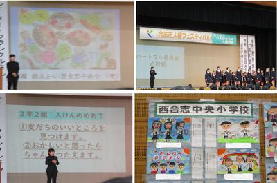 12月9日(土)に合志市人権フェスティバルが開催されました。学校からの発表では、本校のハートフル委員会を中心に、1年生から6年生までの児童代表が発表を行いました。ハートフル委員会が行ったアンケート結果から、学校で楽しく過ごすことができていない児童がいることが分かり、それを改善していくために各学年・学級で取り組んだ事を伝えていきました。発表の内容は勿論のこと、声・態度も素晴らしかったです。伝えたから終わりではなく、伝えることが始まりです。