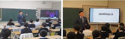 2月22日金曜日に西合志中学校の田﨑校長が来校され、6年生3クラスでに英語の授業を行われました。私も学生時代は英語が苦手であったために、どんな授業をされるのか興味を持って見にいきました。田﨑校長曰く、英語を日本語に直して覚えようとしても英語力は身につかないという話をされました。英語の言葉を映像と結びつけてイメージすることが大切だと言われました。田﨑校長の授業を見ていて「なるほど!」と思える場面がたくさんありました。子どもたちも楽しいだけでなく、意欲的に授業に参加していました。