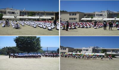 4月28日(金)の2校時に地震避難訓練を行いました。授業中、大きな地震が来たという想定での実施でした。子どもたちは、担任の指示に従い、速やかに運動へと避難しました。今回は、避難経路の確認が大きな目的でした。しかし、自然災害の中でも、地震はいつ来るのか予想が難しいものです。いざというときに、大人の指示が無い状態で的確に判断して行動できる力が必要になります。今後、休み時間や掃除時間などの来ることを想定した訓練も行っていきたいと考えています。