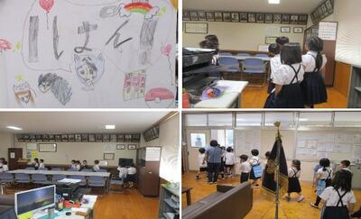 先日、1・2年生の学校探検が実施されていました。2年生が1年生と手をつないで校長室を訪れました。「2年生の〇〇です。画工探検で校長室を見せてもらいに来ました。入っていいですか」と上手に挨拶をして入ってきました。歴代校長の写真や棚に入っている本を見ながら、「初めて入った」ということを言いながら校長室を一周してしました。2年生の児童が一生懸命に1年生に関わる姿がとても微笑ましかったです。