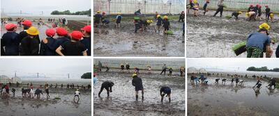 朝から雨が降っていて判断に迷いましたが、午前中はどしゃ降りになることはなさそうでしたので、予定通り田植えを実施しました。今年から、弁天近くの田んぼを借りての実施となりました。毎年協力をいただいている吉永さんをはじめ、保護者の方々のご協力で無事に終えることができました。ありがとうございました。子どもたちも笑顔で田植えをすることができました。笑顔になったのは、田植えの体験ができたからのなのか?田んぼに素足で入って泥と戯れたからなのか微妙な所ですが・・・。子どもたちのとっては、もしかすると最初で最後の体験になるかもしれません。この貴重な体験活動を忘れずに、食べ物を作って我々に提供してくださっている方々の思いや食べられることのありがたさを考え続けて欲しいです。