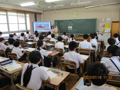 本日7月10日、本校でランダムローテーションを行いました。通常、担任が行う道徳の学習ですが、他学級担任・他学年担任・専科・教頭先生・校長先生が授業を行いました。子どもたちもいつもと違う雰囲気に緊張気味でしたが、しっかりと学ぶことが出来ました。