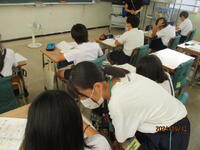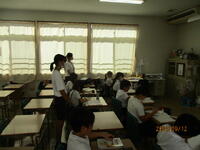 10月22日に研究授業が行われました。1年生は国語科の「サラダでげんき」という単元の学習でした。本文に習いながら、自分だったら何を入れるのかという文章を書いて発表する時間でした。入学して半年が過ぎましたが、しっかりと学習している姿が見られました。他の1年生の教室は自習でしたが、静かに課題を進めている姿に大きな成長を感じました。