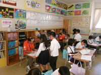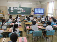 3・4年生の外国語活動、5・6年生の外国語の授業は、活気があります。英語に親しむと同時に抵抗感を少なくしていくことを大切にした授業がなされています。文法は分かるけど話すことは苦手という昔の活動ではなく、対話を中心とした学習で1時間の流れが組み立てられています。