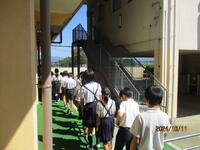 11月10日に火災避難訓練を実施しました。当日は、雨天のため放送への対応と消防署の方の話を配信する形での実施となりました。消防署の方から、何のために避難訓練を実施するのかという話をいただきました。「自分の命を自分で守るため」ということでした。そのために必要な事は、どこで何が起きているのかという情報を確実に「聞き取る」ということです。その情報をもとに、正しく安全に行動するための訓練です。今後も定期的に実施していきます。