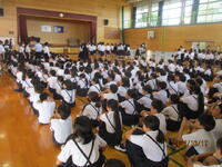ようやく体育館で集会や始期ができる気温になってきました。久しぶりに全校児童が集まり、前期の終業式と後期の始業式を行いました。昨年度から「無言入退場」に取り組んでいますが、ほぼ、指導の必要がなくなりました。静かに移動して、先に体育館に入った学級は静かに待っています。始業式の日に特に際立っていたのは4年生です。入場も良かったけれど、体育館で「待つ」姿勢が素晴らしかったです。
