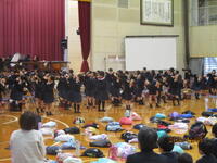 2月に入ってから、1年生と4年生が第一小学校と交流学習を行いました。4年生は第一小に行って、体育館で活動を行いました。たくさんの段ボールを用意して、グループに分かれて家や迷路などを協力して作成していきました。1年生は、第一小が来校して活動を行いました。民生児童委員さん方のご協力を頂き、昔遊び体験を実施しました。どちらの学年も楽しそうに活動できていました。来年度も、定期的に合同学習を進めていきながら、どの学年も中学校に進学するときにしっかりと顔見知りになっておくことを目的の一つとしていきます。