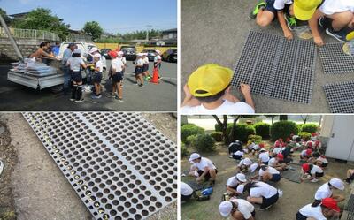 学校評議員である吉永さんの指導のもと、5年生が田植え用の種まきを行いました。毎年5年生は、社会科の学習と関連させて、総合的な学習の時間に「米作り体験活動」を実施しています。私たちは、毎日様々な物を食べています。スーパーに行って買い物をする過程は分かっていますが、スーパーに食材として並ぶまで、どのような過程をへているのかということを社会科で学んでいきます。その出発点である生産者についてもしっかりと学んでいきます。教科書や資料を通しての学習だけでなく、実際に体験できるこの活動を大切にしていきたいと考えています。