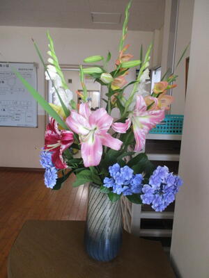 職員玄関に季節の花が飾られています。算数少人数の吉田先生が持参されて、定期的に替えて下さっています。来校された方から「綺麗ですね」と言われると嬉しさと飾って下さる先生への感謝の気持ちが膨らみます。先生は、玄関だけでなく校内の環境整備(花の種をまいたり、プランターに苗を植えたり)に尽力されています。子どもたちが生き物に触れることで、豊かな心を育てたいという思いが伝わってきます。学校は、こうした先生方一人一人に支えられていることを改めて実感しています。