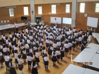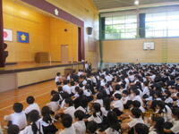 ようやく体育館で集会や始期ができる気温になってきました。久しぶりに全校児童が集まり、前期の終業式と後期の始業式を行いました。昨年度から「無言入退場」に取り組んでいますが、ほぼ、指導の必要がなくなりました。静かに移動して、先に体育館に入った学級は静かに待っています。始業式の日に特に際立っていたのは4年生です。入場も良かったけれど、体育館で「待つ」姿勢が素晴らしかったです。