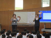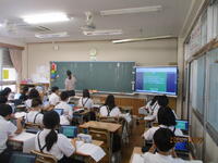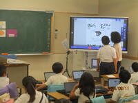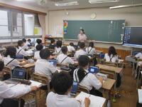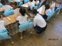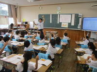 3・4年生の外国語活動、5・6年生の外国語の授業は、活気があります。英語に親しむと同時に抵抗感を少なくしていくことを大切にした授業がなされています。文法は分かるけど話すことは苦手という昔の活動ではなく、対話を中心とした学習で1時間の流れが組み立てられています。