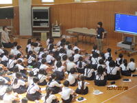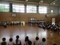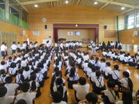 月曜日の2・3校時に3年生が第一小と交流学習を行いました。2校時は体育館での活動、3校時は各教室に分かれて道徳の授業を行いました。第一小の校長先生、教頭先生も見に来られていました。中学校に進学するとき、お互いに知り合った状態であるために、小学校同士が連携して、日常的に交流学習を行うことを大切にしています。