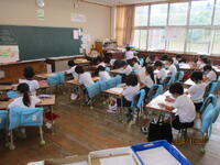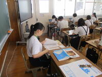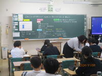 10月22日に研究授業が行われました。1年生は国語科の「サラダでげんき」という単元の学習でした。本文に習いながら、自分だったら何を入れるのかという文章を書いて発表する時間でした。入学して半年が過ぎましたが、しっかりと学習している姿が見られました。他の1年生の教室は自習でしたが、静かに課題を進めている姿に大きな成長を感じました。