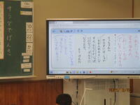 6年生は国語科「模型のまち」の授業でした。物語文に関して、これまで文中の表現の工夫を学んできました。繰り返しの言葉であったり、色であったり、情景描写であったりと学びを積み重ねてきています。今回の授業では、その表現の工夫について、読み手である児童個々が、これまでの学びを踏まえて感じたことを交流し合っていました。それぞれの考えを1時間で発表し合うには時間が足りませんので、ロイロノートを活用して学びを深めていました。