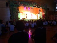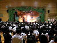 12月3日に5・6年生による合唱コンクールを開催しました。本校の音楽専科が、素敵な歌声が響く学校をつくりたい、また、合唱は学級づくりにも役立つということを提案して、高学年の担任が賛同して実現できました。率直に言ってとても良かったです。完成度も高かったです。初めてとは思えない出来映えでした。専門的な指導と学級担任の歌うことをとおした学級経営が、児童の力となった感じがしました。上記の様子は、本日の昼休みに金賞を受賞した学級が、多目的ホールで発表している様子です。低学年の児童が「とっても上手だった」と感想を伝えていました。下級生が目指す1つの姿を見せることができていました。