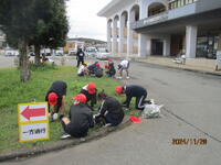 11月28日に中学校区クリーンアクションが実施されました。実施に向けて、中学校生徒会と小学校の児童企画委員会がオンラインで会議を行いました。「登下校などで地域の方にたくさんお世話になっている。地域のために出来ることは・・・。」ということで意見交換を行い、今年度も実施することになりました。生徒・児童主体の活動になりつつあります。本校は6年生が活動をおこないましたが、中学生の指示を聞きながら一生懸命に取り組んでいました。