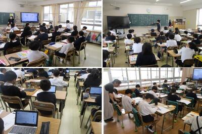 入学してから1週間が経ちました。1年生の教室の様子です。子どもたちの休み時間の過ごし方や授業時間の中での決まりなど、担任の先生が丁寧に話しながら指導をされています。集団で生活を営む上で、規範意識や学習規律をきちんと身につけておくことは、安心して学び、生活していくために必要なことだと考えています。何事も始めが肝心です。1年生だけでなく、どの学年も気持ちを新たに取り組んでいる所です。