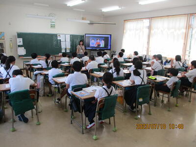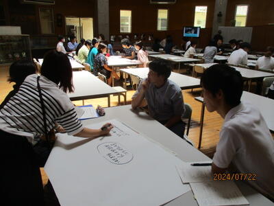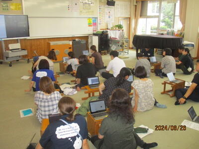 夏休みに、我々教職員が何をしてるのかというと校内、校外での研修や会議、事務整理、前期後半の授業準備など普段はじっくり時間をかけることができないようなことを行っています。写真は校内で実施した研修の様子です。水俣病問題について外部から講師を招いて学んだり、職員がそれぞれ得意な分野の授業を他の職員に伝えたり、新しく挿入されるアプリを学んだりしました。子どもたちが意欲を持って学び続けていくためには、私達も学び続ける必要があります。本校の良さの1つは、先生方に学び続ける意思があることです。