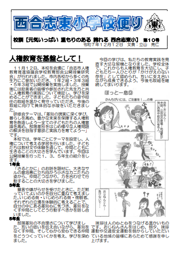 人権学習や水泳の授業、児童集会の様子など、西合志東小の今を紹介しています。ぜひご一読ください。