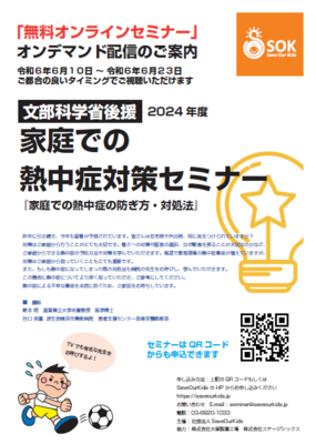 文部科学省後援、2024年度「家庭での熱中症対策セミナー」のオンデマンド配信があります。