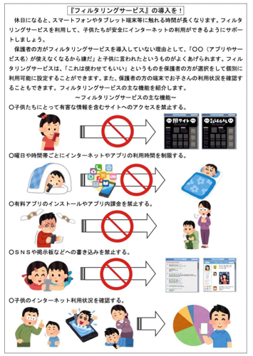 児童生徒のスマートフォンやインターネット、SNS等の利用が進み、情報モラル教育の重要性がますます高まっています。学校でも、情報モラル教育を推進していますが、掲載しております資料をもとに、ご家庭でも確認をお願いします。