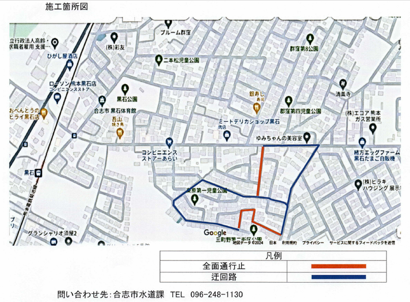 道路工事に伴う通行規制ヶ所をご確認ください。