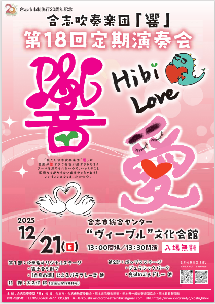 合志吹奏楽団「響」第18回定期演奏会の案内チラシです。