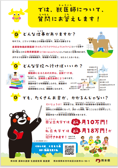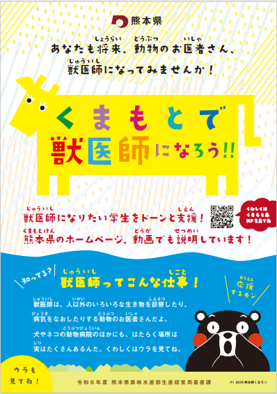 熊本県農林水産部生産経営局畜産課より獣医師の仕事の魅力を知ってもらう目的でチラシが届きました。