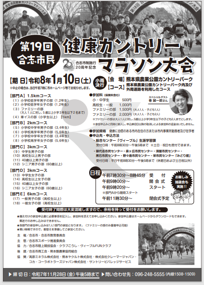 合志市教育委員会生涯学習課より「第19回合志市民カントリーマラソン大会」の案内チラシが届きました。