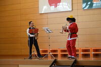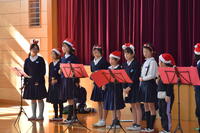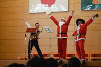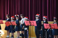 12月19日(金)昼休み、音楽クラブのクリスマスコンサートがありました。ハンドベルでクリスマスソングを演奏してくれました。その後、スペシャルイベントで村上教頭先生(サクソフォン)おじねんさん(フリューゲルホルン)、立山校長先生(タンブリン)がクリスマスメドレーの演奏を披露されました。