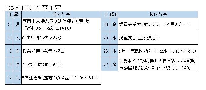 なお、7月2日は小中一貫教育授業参観日交流日で2年生と6年生の下校時刻は他学年と異なります。通信でご確認ください。