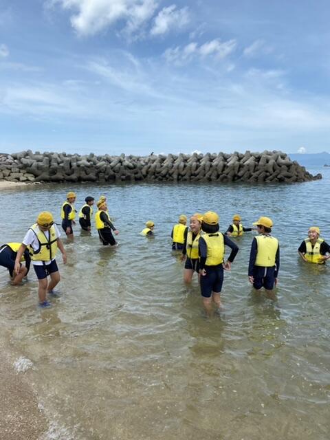 今回の学習では、服や靴を身につけると水中で動くのが難しいことがよく分かりました。また、背浮きをしたり、身近な物(ペットボトル、レジ袋)を投げ入れて救助できること等も学びました。今回の学習を生かして、命を守るためにどうしたらよいかしっかり考えて、生活していって欲しいと思います。