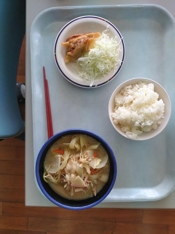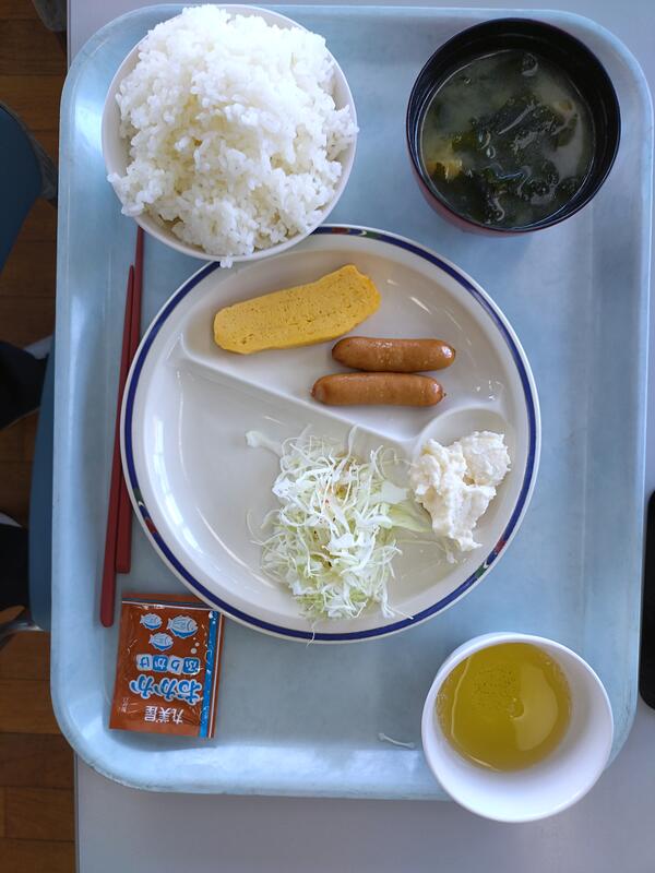 オムレツ、ミートボール、ポテトサラダでした。一番おいしかったのは、ごはんとみそ汁だそうです。