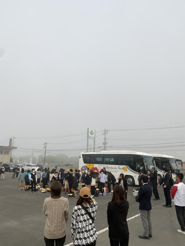 今日から6年生修学旅行です。役場での出発式を終え、7:15に全員で元気に出発しました。