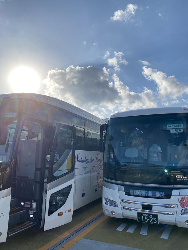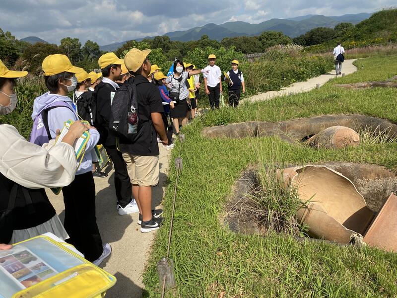 吉野ヶ里遺跡の学習を終えて、昼食会場に向かいます。とても良い天気です☀️
