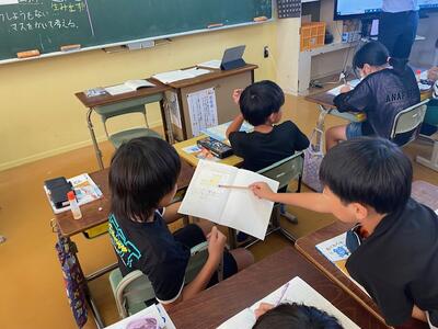 10月7日、たんぽぽ1学級で、国語の研究授業を行いました。1年生2名と2年生5名の学級です。一番の研究は「わたり学習」です。1時間に2つの学年が同時に学習します。担任は1人なので、担任が2つの学年を交互にわたりながら学習を進めていくので、「わたり学習」といいます。なかなか高度な「授業力」であり、子供たちにも、少しの間自分たちで学習を進める「学習訓練」が必要になってきます。1年生も2年生も、タイマーを活用したり、進行役の子供が進めたりしながら、「わたり学習」を効果的に進めていました。先生の「授業力」と子供たちの「学習訓練」ともに、成長を実感しました。