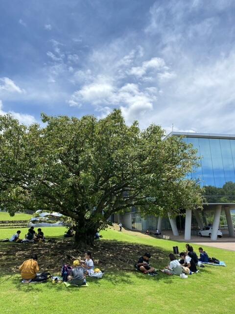 昼食は芝生広場でお弁当を食べました。とても天気が良いです。
