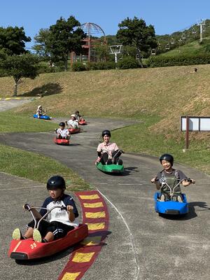 青少年の家の向かい側にある芦北海浜総合公園でローラーリュージュを楽しみました。初めは恐る恐る、次第にガンガン挑戦する子が多く出てきました。経験を積み重ねると上達しますね。