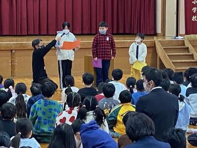 12月24日、終業式を行いました。2学期は79日の登校日があり、「元気力」「挑戦力」「発表力」「思いやる力」などを、1日1ミリ高めながら成長してきた子供たちです。終業式で3人の児童が発表したがんばったことを紹介します。このように、授業や行事でのW(ワーク=積極的な考動)が、それぞれの子供にとっての成長につながっています。