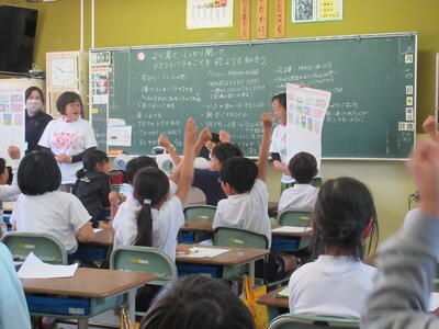 5月14日、3年生のふるさと学習がスタートしました。3年生のテーマは「ツクシイバラ」です。この日は、「球磨川ツクシイバラの会」から3名、錦町企画観光課から2名来校され、ツクシイバラについて、映像や画像、実物をもとに説明していただきました。子供たちは、町花である「ツクシイバラ」に興味津々でした。今週の金曜日(5/17)には、ツクシイバラが群生している球磨川沿いに校外学習に出かけます。