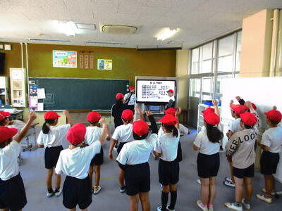 5月2日、本日から運動会特別日課になりました。朝8時30分から10分間の応援の練習があります。5・6年生の応援団が、各教室で電子黒板等を活用しながら応援のやり方を指導していました。教えて、やって見せ、やらせてみて、ほめたり、注意点を伝えたりしながら、よりよい応援になるように頑張っていました。これから大変なこともあると思いますが、本番に向けて仕上げていくこの過程こそが、応援団の子供たちにとって、大きな成長につながります。応援団のみなさん、ファイトー!