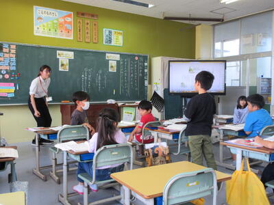 10月9日、2年1組で国語の研究授業「お手紙」を行いました。めあては「がまくんの気持ちの変化を考えよう」で、中心発問は「がまくんの気持ちががらっと変わったところはどこでしょう?」でした。子供たちから5つの箇所が出てき、その理由を伝え合いました。選択が生まれる発問は、子供の思考を活性化します。「自分の考え+理由」を、しっかりと考えた子供たちでした。まさに、子供と先生で創り上げる授業でした。