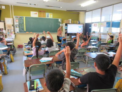 10月10日、3年1組で算数の研究授業を行いました。めあては「重さの計算の仕方を考えよう。」です。授業を参観し、一番感じたのが、「子供の目の輝き」と「挙手率の高さ」です。学級経営が土台にあるのは間違いないのですが、それ以外に担任の先生の次の2つの指導力の高さを感じました。1つ目は「確認」です。「立って、分かったら座る等の動きでの確認」「言える人?言えない人?の意思の確認」「〇〇さん~ですよ。と学習訓練の確認」「ペアの人との考えの確認」「友達の答えを見て回ってもいいよ。というマイサポートの確認」等子供たちの進捗状況をいろいろな方法で確認していました。もう1つは、「挑戦」です。1つ目の問題を解いて、その後、ハードルが高い2つ目の問題を出題するのです。「ん?どうすのる?」となります。挑戦意欲をくすぐるのです。「分からないことを学ぶこと」こそが授業です。しかも、「楽しく、意欲的に!」です。授業でも「元気と挑戦で成長」している3年生でした。