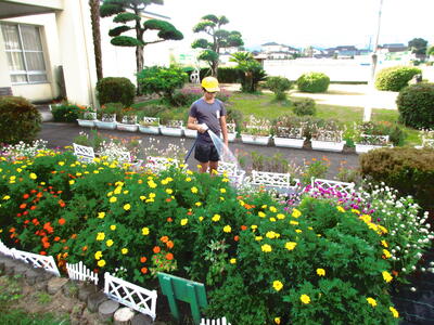 9月9日、読み聞かせ「こだまの会」の7名の皆さんが、本の読み聞かせのために、朝から来校されました。ちょうどその時、玄関前では、栽培委員会の子供が花への水やりをしていました。「こんなに大きなマリーゴールドはなかなかないよね。」と驚いておられました。毎朝交代で水やりをやっている子供たちです。「10秒ぐらいしっかりと水をやってくださいね。」との担当の先生の指示を守ってたっぷり水を与えていました。また、掃除の時間にも6年生が花へ水をやっています。お陰でぐんぐん成長している玄関前の花たちです。「ありがとう。」という花たちの声が聞こえてきそうです。