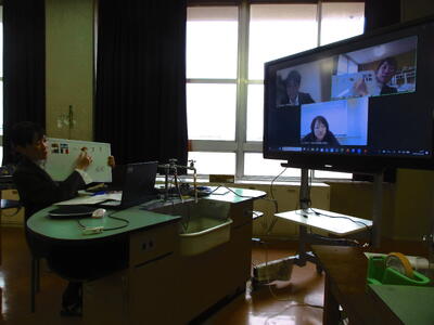 2月6日、下の写真のように、英語専科の先生が、理科室でZOOMによる模擬授業を行いました。相手は大阪府と兵庫県の先生です。この研修は、各県代表2名が参加する3日間の研修で、以前は筑波まで行って研修を受けていましたが、今は便利になりました。講義を聞くだけではなく、「主体的・対話的で深い学び」の視点から指導案を作ったり、模擬授業をしたりします。本校の英語専科の先生は、この研修をもとに、錦町3小学校での英語の授業改善に生かすとともに、管内の英語の先生方に広めるリーダー的な役目も担います。いつもパワフルな授業で、子供に英語の楽しさを感じさせている英語専科の先生ですが、英語の授業力を更に向上させた3日間になったことでしょう。研修お疲れ様でした。