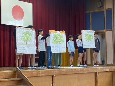 このように、クラスの友達のいいところや活躍した姿を「梨の花」に書いて、梨の木を成長させていく取組です。人権旬間が12月9日から2週間行われます。「思いやる力」を集中的に成長させる期間です。