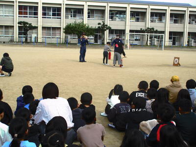 11月4日、火災の避難訓練を実施しました。今回、初めて2時間目の休み時間に行いました。災害はいつ起きるか分かりません。もし先生がいなくても、もしお家の人がいなくても、もし大人がいなくても、「自分の命を自分で守る行動」をすることが大切です。今回はそのような訓練でした。人吉下球磨消防署東分署から3名の消防士の方に来校して指導していただきました。消防士の方から、「避難の時に、ざわざわしたところはありましたが、自分でしっかり考えて避難していました。」との感想をいただきました。その後、写真のように、防災教室も開き、消火器の使い方についても学びました。より実践的な避難訓練でした。
